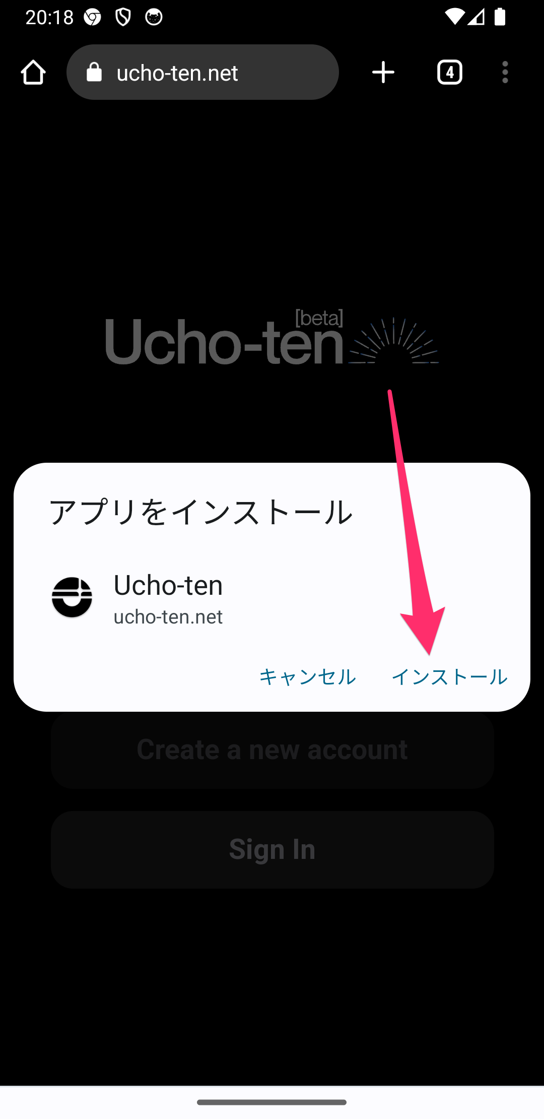 | 5. Ucho-tenをタップすると PWA版が起動します |