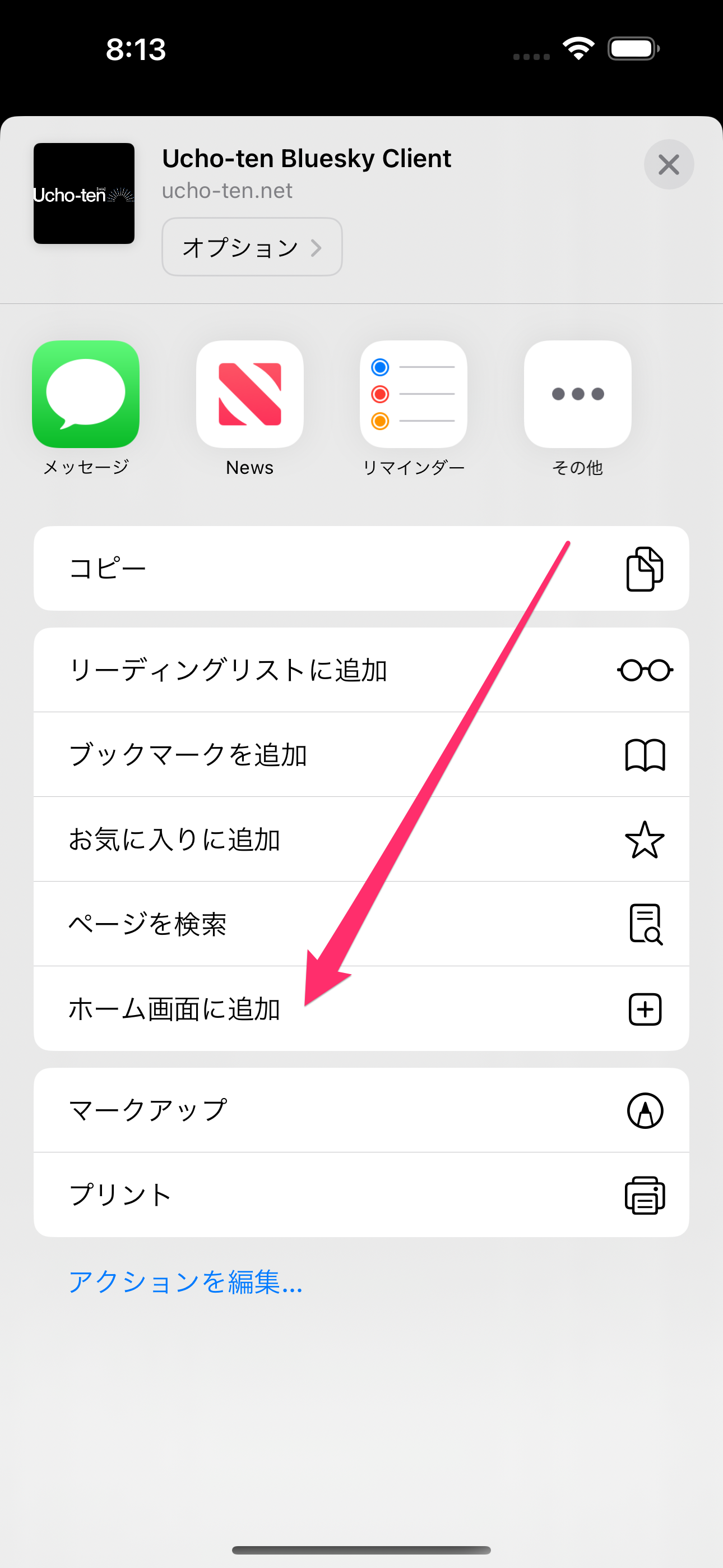 - Ucho-tenをスマホアプリのようにホーム画面に追加できる